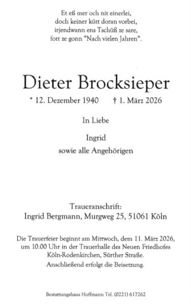 Dieter Brocksieper 01. März 2026 †